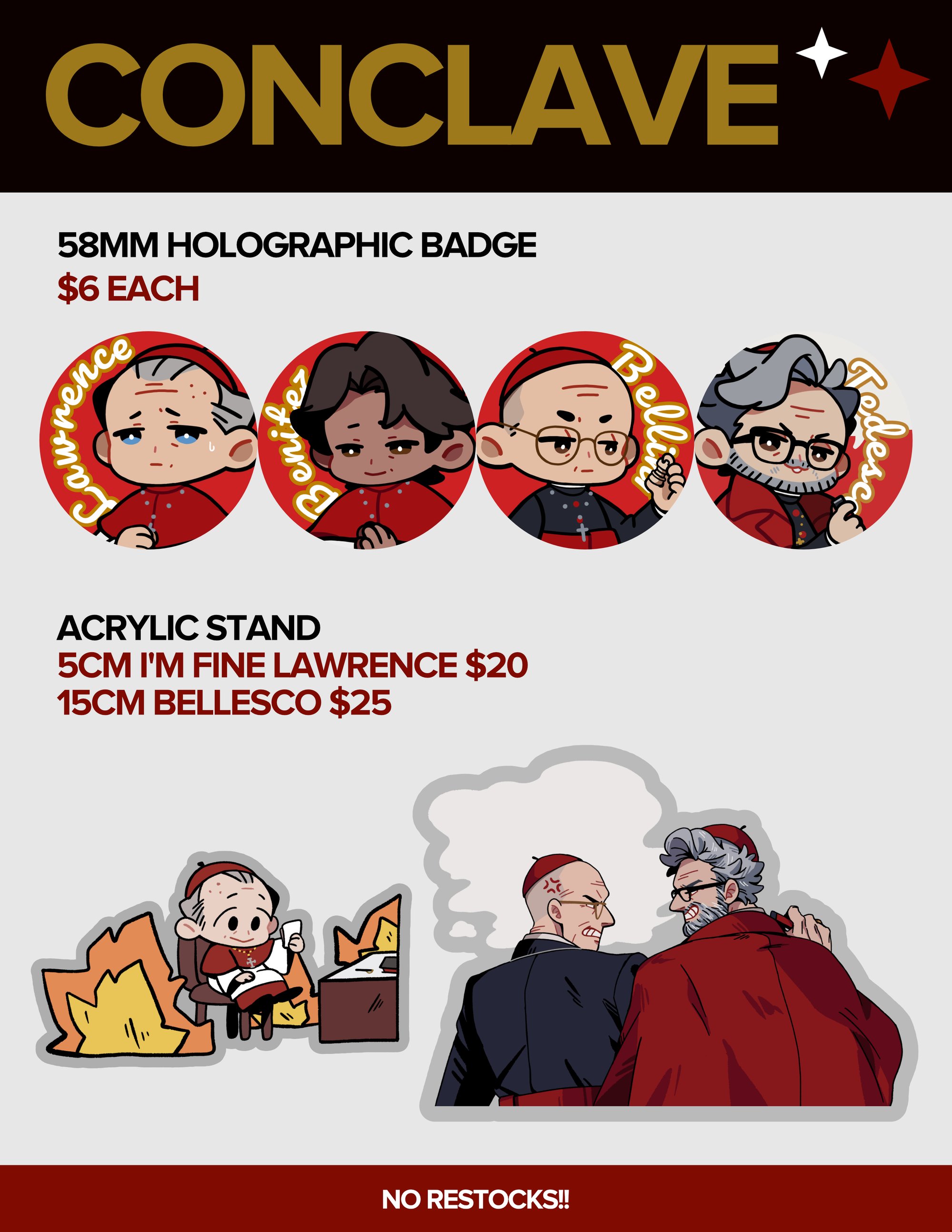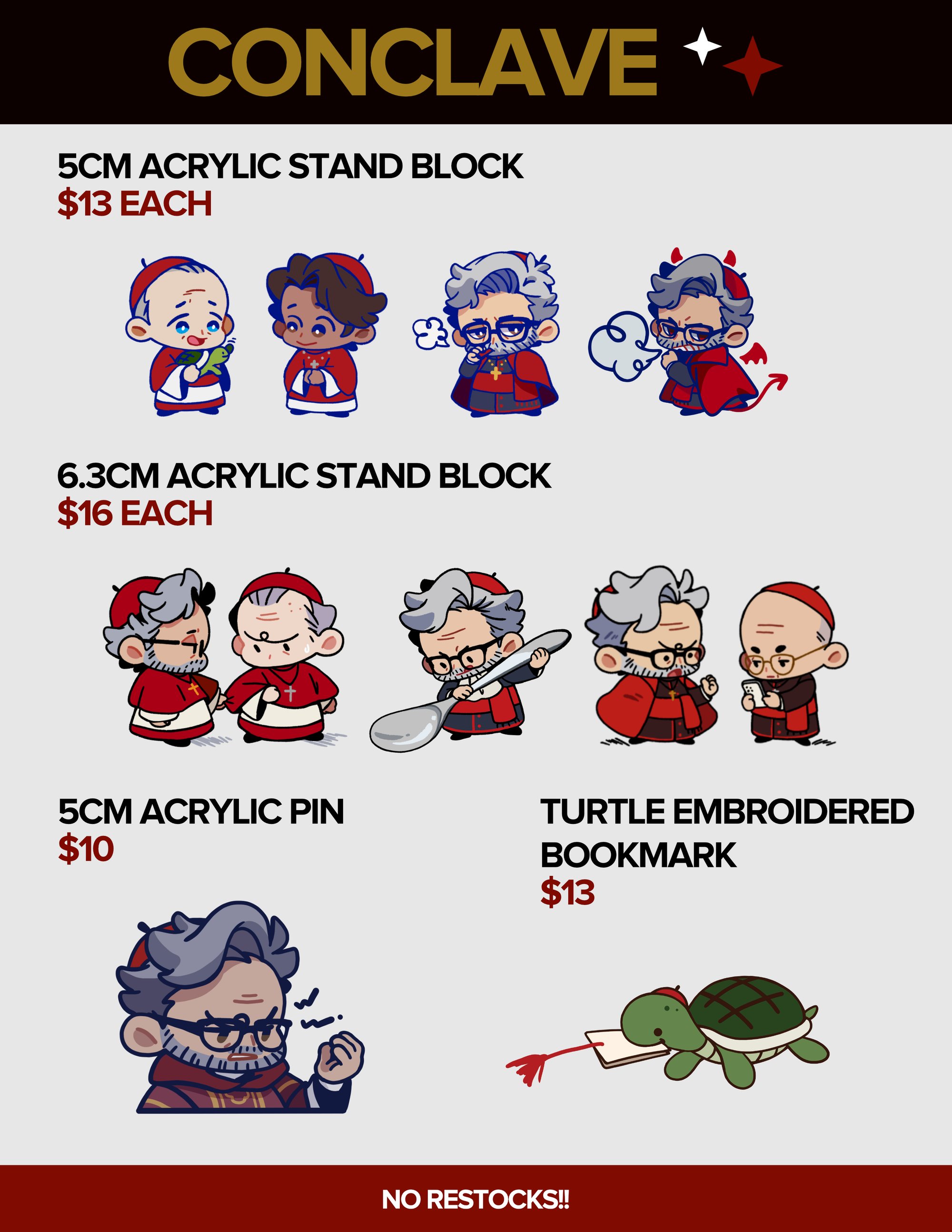 Final stock, no restocks! Would love to make more Conclave merch in the future!